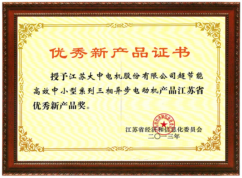 江蘇省優(yōu)秀新產(chǎn)品獎(jiǎng)證書(shū)