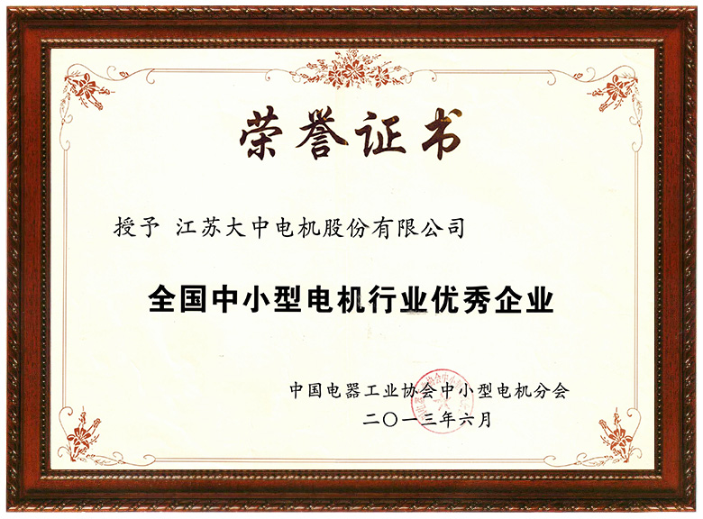 全國(guó)中小型電機(jī)行業(yè)優(yōu)秀企業(yè)